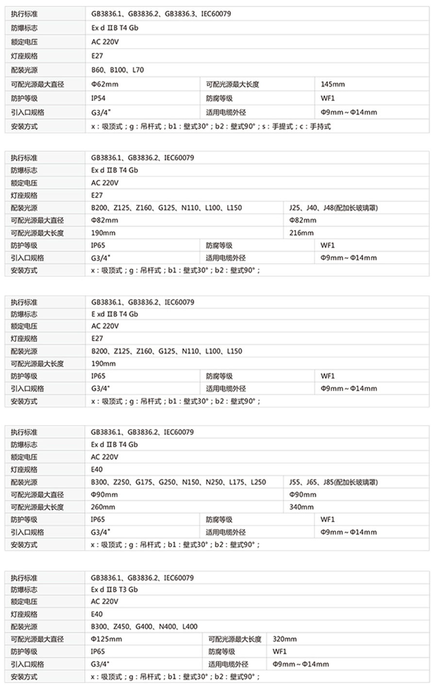 安装方式(X:吸灰式;g:吊杆式;d:吊鍵式; b1 :壁式30* ; b2 :壁式90 ;s:手提式;c:手持式)